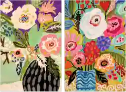 This set is designed with a vertical orientation, making it perfect for creating a structured, gallery-style focal point. To maintain a contemporary feel, hang the two pieces side-by-side with approximately 2 to 4 inches of space between them. This small gap creates "visual friction" that makes the pair feel like one cohesive, oversized statement piece. The multi-colored floral subject—featuring purple, green, and pink—works exceptionally well when echoed by smaller accents in the room, such as a navy accent chair or a textured cream rug.