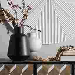 Inspired by sleek elegance and clean lines, a minimalistic design offers effortless luxury with monochromatic tones and bold, angular structures. The Gucam black decorative vase is crafted with solid blown glass for a sleek and elegant design with a durable structure. The matte black finish gives this amphora home decor vase a minimalist modern appeal. This glass vase features an opaque finish for a sleek and versatile design as a stand-alone piece or filled with florals or stems. Customer assembly is required.