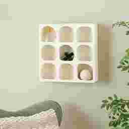 Elevate your space with Gudin I, where sleek elegance meets effortless luxury. Its minimalist design and bold, angular lines turn any wall into a modern statement of style. Crafted from high-quality MDF and iron, this wall shelf is as durable as it is beautiful. With nine spacious compartments, it offers the perfect canvas to showcase your favorite decor, books, or collectibles. Imagine the admiration from guests as your curated items shine against its sandstone-accented surface. Can be hung vertically using the keyholes; nails and screws not included. Suitable for indoor use only. This item ships fully assembled in one piece. Bring home the Gudin I today and transform your room into a sanctuary of sophistication.