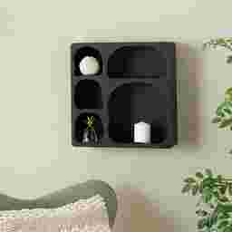 Transform your room with Gudin II, where sleek elegance and clean lines meet minimalistic luxury. Its bold, angular design and monochromatic tones create a modern statement that elevates any space. Crafted from high-quality MDF and iron, this wall shelf offers lasting durability without compromising style. Five spacious shelves provide the perfect stage to display your favorite décor, books, or treasures. Imagine the compliments as your curated items pop against its chic sandstone-accented surface. Can be hung vertically using the keyholes; nails and screws not included. Bring home the Gudin II today and make your space a reflection of sophistication and taste.