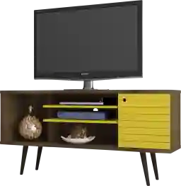 The Guemes II yellow console is the perfect blend of quality craftsmanship, brilliant design, and purposeful functionality. Featuring a large open compartment, one hidden cubby, and three center shelves to create the ultimate entertainment center perfect for stashing DVDs, board games, electronics, and media accessories. Free standing and easy to maneuver, this piece will mix well with any decor and its artful grooves will create a statement in any space. Customer assembly is required.