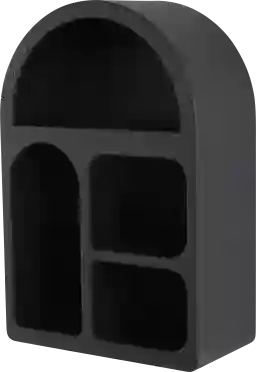 Inspired by sleek elegance and clean lines, a minimalistic design offers effortless luxury with monochromatic tones and bold, angular structures. The Guesi black room wall shelf is made from high-quality MDF and iron, ensuring durability and style. This arched shelf boasts a sleek black finish with a textured surface that adds a modern touch. The wood wall shelf features four spacious shelves providing ample storage space for your decor items.