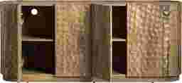 Round out your home entertainment set up with the Guillory credenza. Stained in a light brown finish, this piece is crafted with an ornate design that features touches of modern and coastal style. Pass through holes on the rear of the case make wire management easy while internal shelving helps with organization and storage.