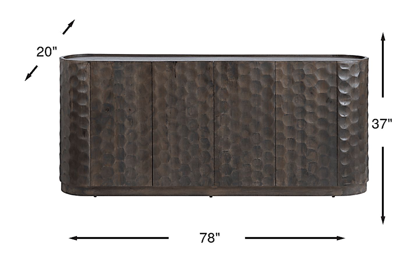 In an open-concept floor plan, a substantial 78-inch credenza is an excellent tool for defining the "living" zone. Its 20-inch depth is deep enough to provide significant storage and surface area for decor, yet slim enough to avoid obstructing natural foot traffic. At 37 inches tall, it provides a perfect visual anchor for large walls, helping to ground the room and provide a sense of scale in larger, multi-functional spaces.
