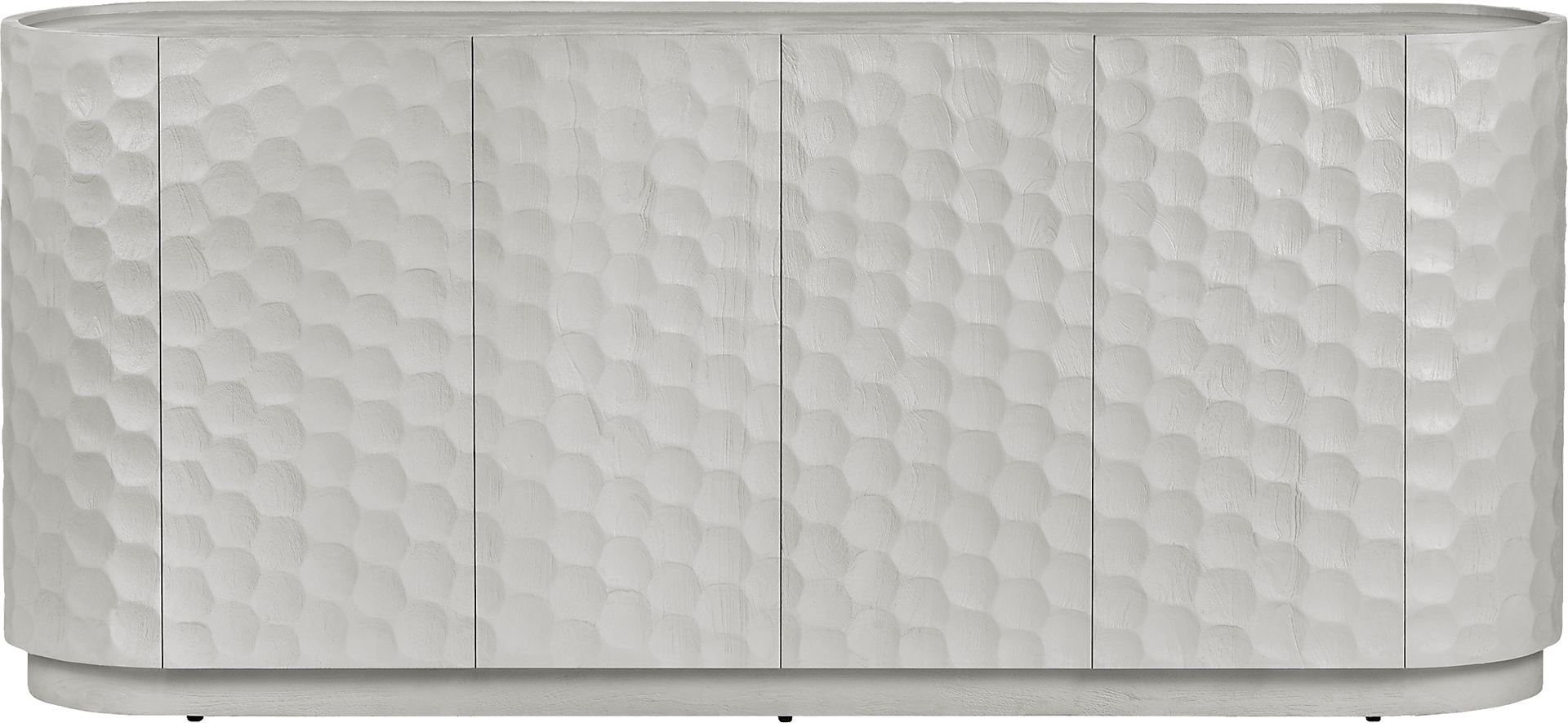 Round out your home entertainment set up with the Guillory credenza. Stained in a white finish, this piece is crafted with an ornate design that features touches of modern and coastal style. Pass through holes on the rear of the case make wire management easy while internal shelving helps with organization and storage.