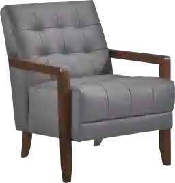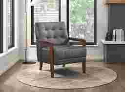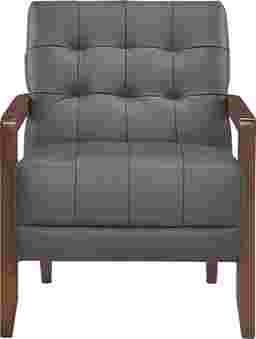 Elevate your living space with this Gulliver top grain leather match accent chair, designed for timeless elegance, premium comfort, and lasting durability. Featuring a mid-century modern silhouette, deep tufted detailing, and a solid wood frame with sleek armrests, this chair blends sophisticated style with everyday functionality. The plush, high-density foam cushioning provides exceptional support, while the top grain leather match upholstery offers a luxurious look and soft, supple feel. Built with sturdy wooden legs and reinforced construction, this accent chair is perfect for living rooms, home offices, reading nooks, or bedroom seating, adding a touch of refined charm to any decor. Customer assembly is required.