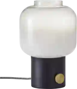 The Haden table lamp is the perfect accent piece for the bedside or living room. A beautiful glass shade has a white color on the bottom and fades into a clear glass on the top. A large, round knob switch on the matte black metal base turns the lamp on and off. With a compact silhouette, this decorative accent can also be a great addition to a bookcase or shelf. Some customer assembly required.