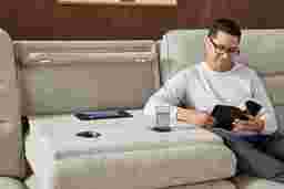 This sectional is uniquely equipped for a modern, tech-heavy lifestyle. The center seat features a fold-down console that reveals integrated cupholders, adjustable reading lights, and a wireless charging pad. These features allow you to keep your laptop or phone powered and your workspace illuminated without needing extra side tables or cluttered power strips, making it a highly functional hub for both productivity and evening relaxation.