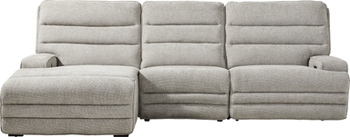 Sinking into the comfiest spot as the house grows quieter comes naturally with the Hadley Park collection, where charm and warmth are designed for effortless unwinding. Wrapped in a soft beige fabric, this traditional sectional features wide, supportive seat cushions and horizontally channeled back cushions that add tailored texture without feeling formal. A spacious chaise offers room to stretch out, while low-profile track arms keep the look sleek and stylish. Dual power reclining provides customized headrest and footrest adjustments through a zero-gravity mechanism that enhances relaxation in every position. For added convenience, the center seat folds down to reveal cupholders, reading lights and a wireless charging pad. LAF chaise, armless chair, dual power RAF recliner. Upholstery: 100% polyester.