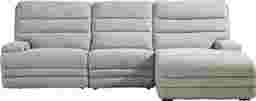 Sinking into the comfiest spot as the house grows quieter comes naturally with the Hadley Park collection, where charm and warmth are designed for effortless unwinding. Wrapped in a soft beige fabric, this traditional sectional features wide, supportive seat cushions and horizontally channeled back cushions that add tailored texture without feeling formal. A spacious chaise offers room to stretch out, while low-profile track arms keep the look sleek and stylish. Dual power reclining provides customized headrest and footrest adjustments through a zero-gravity mechanism that enhances relaxation in every position. For added convenience, the center seat folds down to reveal cupholders, reading lights and a wireless charging pad. RAF chaise, armless chair, dual power LAF recliner. Upholstery: 100% polyester.