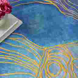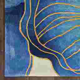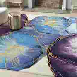 Designed to captivate, the Haebao rug brings charismatic color and daringly dimensional texture to the modern home. Expertly hand-tufted from the finest wool interwoven with silk-like fibers, this contemporary rug blends distinctive style and lasting comfort exquisitely. Create an elegant foundation for your decor with this abstract rug. Pools of blue and purple are outlined with subtly carved, abstract gold lines that form a richly toned floral pattern. This rug is ideal as a focal point for your living room or bedroom furnishings. For maintenance, vacuum regularly no beater bar.