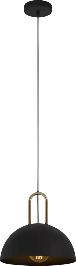 The Hagan Grove pendant provides an ample amount of extraordinary lighting in your special space. Featuring a dome shaped structured black shade accented with brushed brass and an adjustable black hanging cord. This pendant has the chic versatility to enhance the style of a variety of spaces. Professional installation by an electrician is recommended.