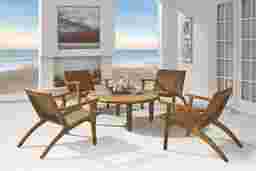 Hagen Tan Teak 5 Pc Round Outdoor Chat Seating Set