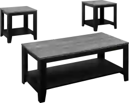 Make a statement in your living room with the Halesworth three piece occasional table set that's sure to take center stage. This versatile accent table set includes a rectangular coffee table and two matching square shaped end tables that make a stylish addition to casual or contemporary decor. A sophisticated black and gray wood-look finish wraps the tables, which feature lower shelves that offer additional space for storage or display. The ample surface area provides a sturdy foundation for lamps, potted plants and decorative items. Customer assembly is required.