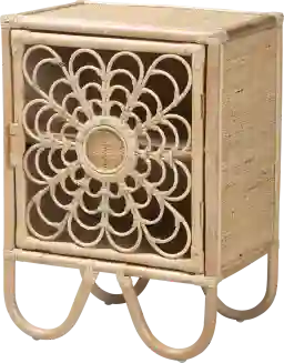 Reinvigorate your bedside with the rustic flair of the lovely Halissee brown nightstand. This bohemian piece consists entirely of natural rattan. The door is comprised of curled rattan poles for a stunning geometric display with rich curves. The Halissee will arrive fully assembled and feature two interior shelves to organize bedroom essentials while reserving the tabletop for nightly use. Curved legs create an eye-catching silhouette, making the Halissee an efficient and beautiful addition to any arrangement. Due to the nature of the natural materials used in this product, it may have variations in areas such as, but not limited to, color, pattern, grain and texture. The hair-like strands of rattan/rattan-fiber are common due to the nature of the material.