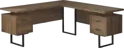 Give your home office a promotion with this extra-large, Halladay corner computer desk with 3 storage drawers. The thick-panel, L-shaped floating desktop provides plenty of room for you to spread out everything you need to be productive and allows you to use the tops of the drawer units as extra surfaces. Finished in the same walnut wood-look laminate as the desktop, 2 small drawers and 1 large drawer with a bar for hanging files offer space for items you want to keep off the work surface. For flexibility, the drawer units are reversible and can be installed on either side according to your preference. Supporting the desk are metal legs in a black finish with a modern, stylish U shape. Customer assembly is required.