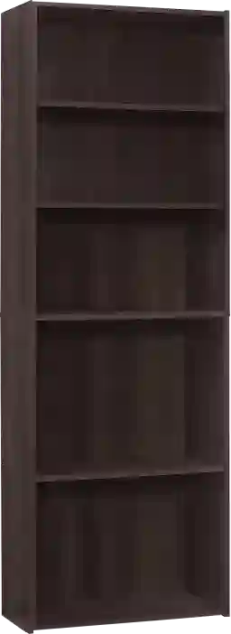 This 5-shelf Hallbrook bookcase in a simple, clean and space-saving design makes it a versatile storage option for any room in your home. The strong adjustable shelving allows for various sized objects to be displayed in your own creative way. Constructed from engineered materials in a warm cappuccino laminate finish, this transitional style bookcase can easily be used in a living room, home office, or bedroom to store books, toys, and decorative accents. Tipping hardware is included to secure safely to a wall. Customer assembly is required.