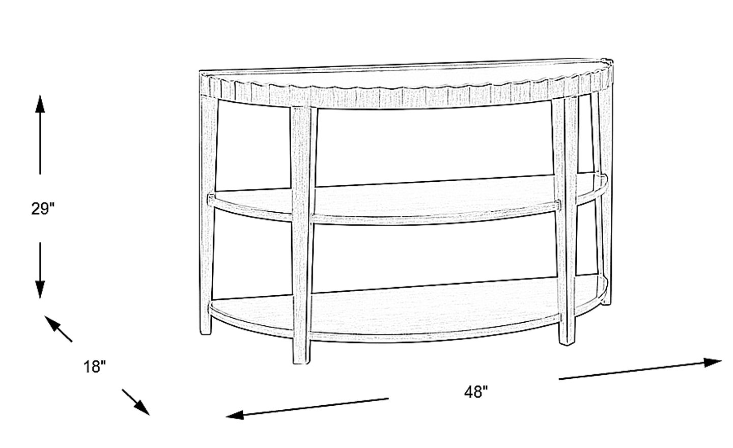 Maximize use of your space with this stylish and practical sofa table. The brushed silver finish and tinted mirror top make this table stand out while offering three shelves for ample storage. Poplar solids and okume veneers create a sturdy and stylish table. Customer Assembly Required