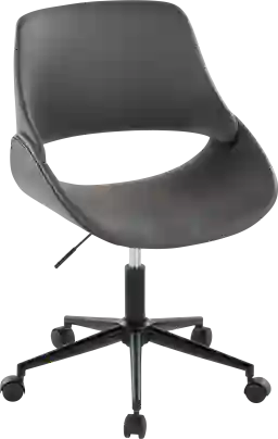 The wide and welcoming seat of the Halma desk chair beckons one to sit and relax. A curved back and contoured faux leather upholstered seat is accented by a sleek metal adjustable base that add to the stylish yet comfortable design. Customer assembly required.