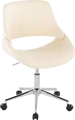 The wide and welcoming seat of the Halma desk chair beckons one to sit and relax. A curved back and contoured faux leather upholstered seat is accented by a sleek metal adjustable base that add to the stylish yet comfortable design. Customer assembly required.