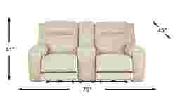 Rich with en vogue delights to tantalize and excite, the Hammond Park loveseat launches party-ready, everyday cozy style into the spotlight. This contemporary piece is upholstered in beige top grain leather where the body touches, with top stitched seams throughout to create a luxurious tailored appearance. Hidden within each arm are cupholders with USB-A and USB-C chargers. The center console also offers central storage, charging and an additional pair of hidden cupholders. Triple power reclining seats feature a zero gravity mechanism that positions the legs above the heart for incredible pressure relief. The lumbar supports, extended padded footrests and headrests are independently adjustable, and USB chargers are included on each control panel for the ultimate convenience. Upholstery: top grain leather where the body touches, polyurethane sides and back.