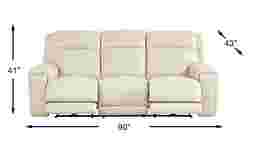 Rich with en vogue delights to tantalize and excite, the Hammond Park sofa launches party-ready, everyday cozy style into the spotlight. This contemporary piece is upholstered in beige top grain leather where the body touches, with top stitched seams throughout to create a luxurious tailored appearance. Hidden within each arm are cupholders with USB-A and USB-C chargers. Triple power reclining seats feature a zero gravity mechanism that positions the legs above the heart for incredible pressure relief. The lumbar supports, extended padded footrests and headrests are independently adjustable, and USB chargers are included on each control panel for the ultimate convenience. Upholstery: top grain leather where the body touches, polyurethane sides and back.