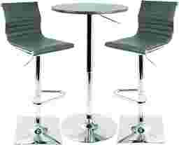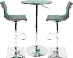 The Hampden adjustable bistro set is just perfect for 2! Featuring a matte gray table top and a chrome finished base that is adjustable, to make this table the perfect height. Perfectly complemented with the Hampden barstools. Featuring a look of leather upholstered seat, with a high polish adjustable chrome base, complete with a convenient foot pedestal. Customer assembly is required. Customer assembly is required.