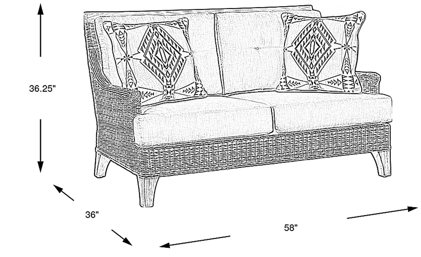 The Hamptons Cove loveseat beautifully combines casual beachside living and sleek contemporary style. Textured handwoven dove gray wicker is accented with smooth-sanded teak accents to create a charming aesthetic. Each cushion features durable, UV-resistant Sunbrella fabric in a neutral flax color. Decorative toss pillows and subtle button tufting details on the back cushions add an appealing, tailored touch. 100% Sunbrella fabric. To clean Sunbrella fabric cushions remove dirt and spray on cleaning solution (water and mild soap), then use a soft bristle brush or sponge. Allow cleaning solution to soak into fabric and rinse thoroughly until soap residue is removed. Air dry. Do not dry clean.