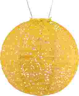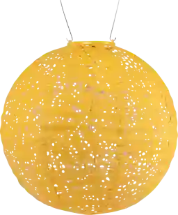 Bring vibrant color and festive energy to your outdoor space with the Hamtara Yellow Outdoor Solar Lantern. Inspired by the intricate beauty of traditional papel picado, these 12in round solar lanterns feature bold geometric patterns and come in four rich, saturated colors that instantly elevate any backyard, patio, or garden. With no wiring or electricity required, these eco-friendly, solar-powered lanterns charge by day and automatically illuminate at dusk, making it easy to enjoy beautiful, maintenance-free lighting every evening. Partial assembly may be required.