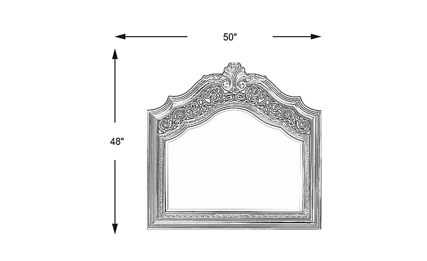 A perfect complement to its matching dresser, the Handly Manor mirror stands out for its exceptional beauty and elegant scalloped curves. Constructed of pecan and poplar solids with ash burl veneers in a warm pecan finish, a graceful band of decorative resin scrollwork adds the final touch.