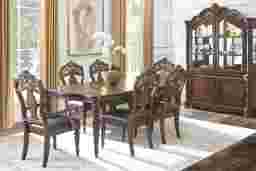 With a timeless grace and easy elegance, the Handly Manor dining table is a sophisticated place to enjoy meals. Exquisitely constructed of poplar wood with ash burl veneers, a warm tobacco finish complements this beautifully crafted table. Two 18" leaves extend it up to 108," ensuring it can accommodate the entire family when necessary, while also expanding its versatility. Elegant scrollwork details, fluted column legs, delicate carved beads, and ornate carvings along the apron lend sophistication to this elegant masterpiece.