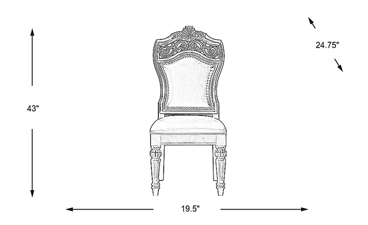 This chair measures 20"W x 25"D x 43"H, featuring a seat height of 19". This is a standard ergonomic height for dining, typically allowing for the ideal 10-12 inches of legroom between the seat and the underside of a standard 30-inch high dining table. Its armless profile also ensures it can be tucked neatly under the tabletop to save space when not in use.