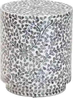 Yes, this stool is specifically crafted for a coastal aesthetic. The use of natural Capiz shell—a material harvested from mollusks—naturally complements maritime and beach-inspired environments. The black and white floral pattern provides a sophisticated, modern update to traditional coastal decor, making it a versatile addition to seaside homes or tropical-themed rooms.
