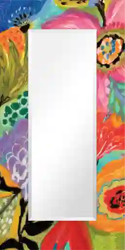 This mirror is crafted for contemporary spaces that embrace bold, artistic elements. The exotic floral design features a vivid palette of red, orange, yellow, blue, and pink, making it an excellent focal point in rooms with neutral upholstery or as a coordinating piece in spaces with colorful accent pillows and rugs.