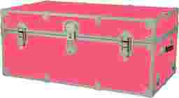 The Happy Camper sticker trunk is a strong, heavy duty trunk that's made for decorating with stickers and decals. Great for summer camp and college! This hand-crafted American made trunk is constructed from the highest quality components, including an exterior laminated sheathing of high performance 18oz vinyl coated polyester. This makes the exterior highly resistant to water penetration, denting and scratching. The vinyl coated polyester is laminated over 3/8? Baltic birch hardwood plywood. Rendered in a cheerful pink, this trunk provides the perfect canvas to make your own. The Happy Camper sticker trunk is conveniently sized and ruggedly built. It's strong enough to stand on!