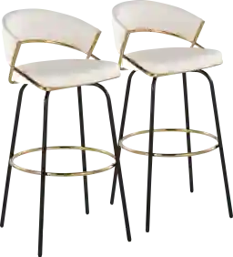 Glam and unique in design, the Harborson III White Barstool, Set of 2 will look great in any dining area, featuring a sleek metal frame and luxurious faux leather upholstery. Whether it's for your home bar, kitchen island, or entertainment area, the Harborson III White Barstool, Set of 2 promises to be the centerpiece of refinement and functionality. Available in a variety of colors, choose the one that suits your space. Customer assembly required.