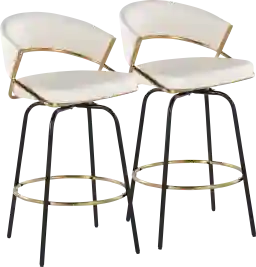 Glam and unique in design, the Harborson III White Counter Height Stool, Set of 2 will look great in any dining area, featuring a sleek metal frame and luxurious faux leather upholstery. Whether it's for your home bar, kitchen island, or entertainment area, the Harborson promises to be the centerpiece of refinement and functionality. Available in a variety of colors, choose the one that suits your space. Customer assembly required.