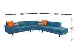 Sleek curves and mid-century modern styling make the Hollywood Hills sectional a stunning addition to any living space. Tailored upholstery in a soft, textured woven fabric and button tufted detail create a crisp aesthetic that's both fresh and comfortable. Designer toss pillows complement the blue color and make a beautiful addition to the attached seat cushions. Versatile too, the pieces that make up the sectional can be separated to create a contemporary living room. High quality solid hardwood frames provide long lasting durability. Crafted for comfort and built to last, this sectional will have you ready to entertain or relax in style. 50% Polyester, 50% Acrylic