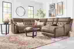 Cozy and comfortable combines with a sophisticated jazz swing that gives the Hardwick dual power sectional a unique blend of styles that are perfect for any room. Contemporary in style with soft brown upholstery, this sectional features a luxurious button-tufted look with diamond patterned welted seams accompanied by comfortable padded arms, padded footrests and single attached seat and back cushions. A chaise lounge provides the ultimate spot for leisure and relaxation every day and all weekend long. Dual power, touch button reclining allows for headrest and footrest adjustment while USB charging ports on the power panel keep your favorite electronics charged and ready for use. The sectional's console also includes USB charging ports as well as a wireless charging pad and hidden storage compartment with abundant room for remotes and other living room necessities. A pull-out cupholder tray is the finishing touch to put everything you need for easy convenience in arms reach. Upholstery: 100% Polyester.