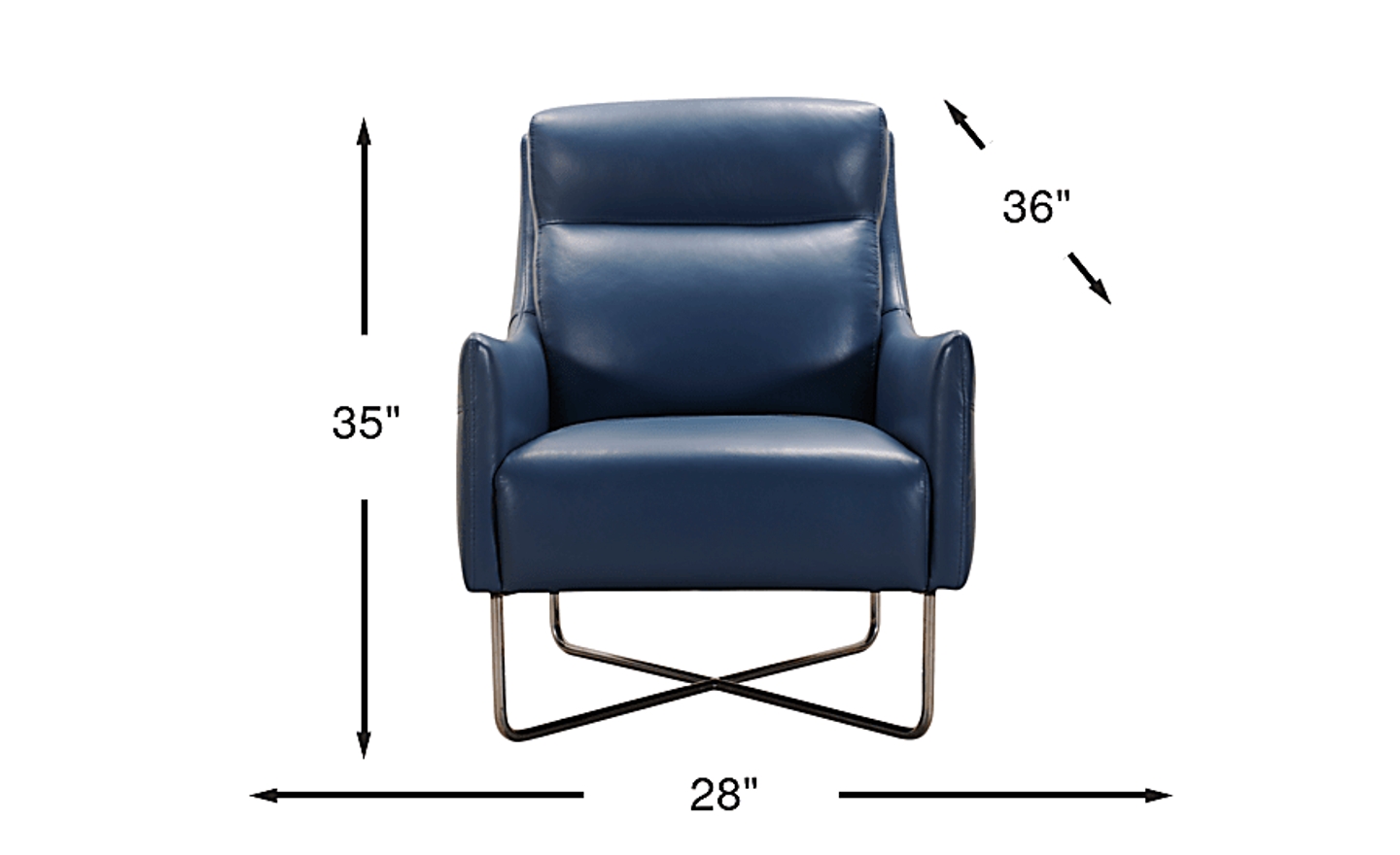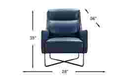 Crafted with a decidedly contemporary look, the Hargan accent chair is luxurious by design. Upholstered in top grain leather where the body touches, this piece offers the best quality materials to accent your living room. Crossed metal legs complement the indigo upholstery and add visual interest to the piece. Upholstery: Top Grain Leather Where the Body Touches and Polyurethane Fabric Sides and Backs.