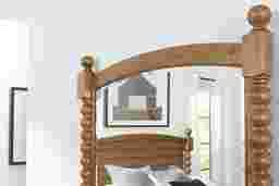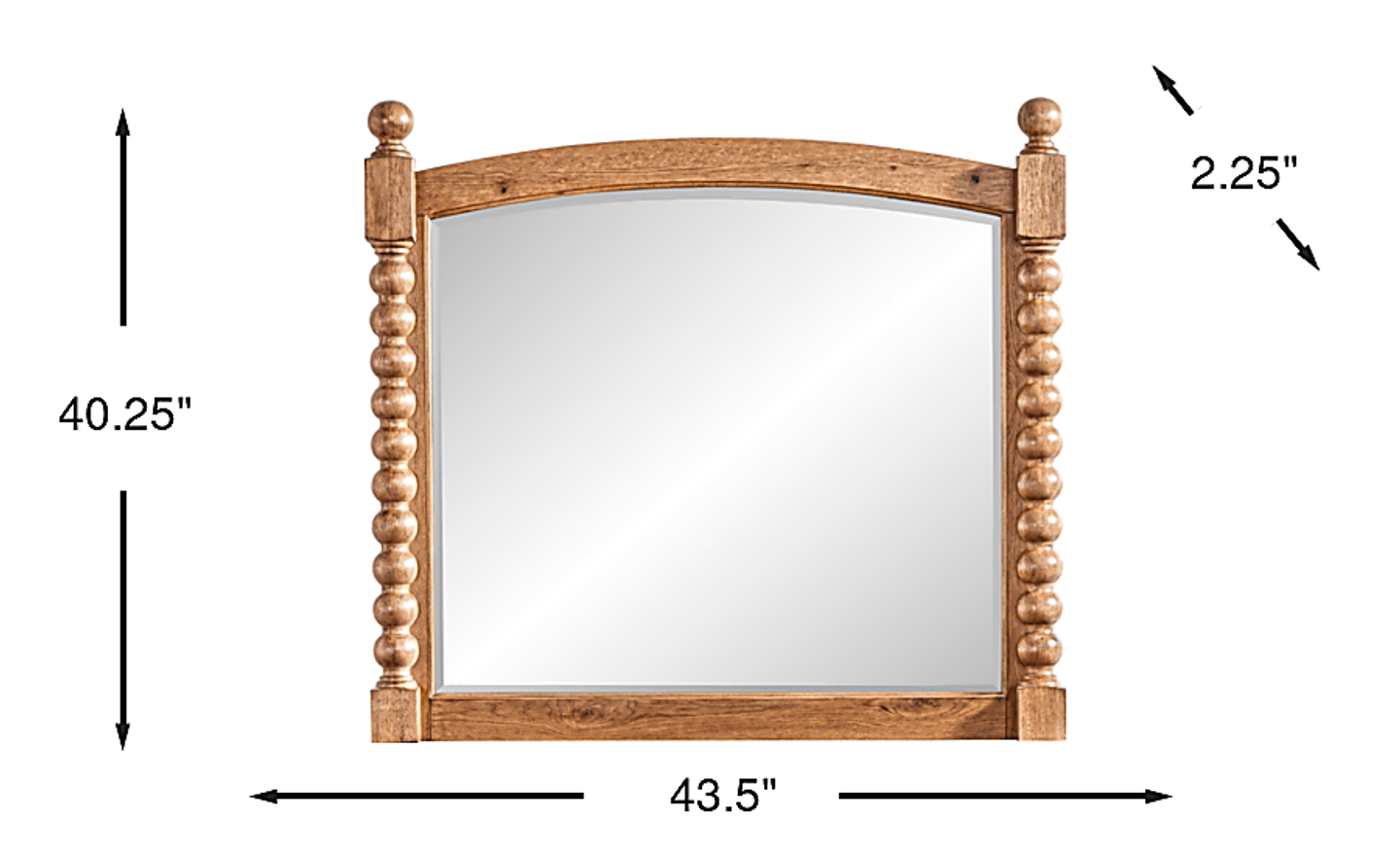 The heartfelt nostalgia of stepping into a well-loved home comes forward in every detail of the Hargrove collection, capturing natural textures and classic shapes effortlessly. Crafted with oak veneers in a light oak finish, this mirror showcases the charm of classic cottage style with a gently arched frame and turned spindle posts on its sides.