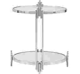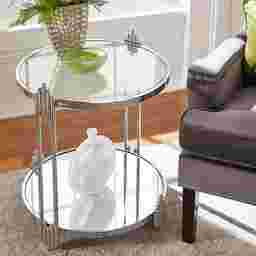 Beautiful and unique, the Hariette chrome finish accent table is the perfect addition to a luxurious styled room. With an ornate, chrome finish metal frame, this table displays obvious high-class fashion. A mirrored bottom shelf serves as the perfect place to display small decor items and adds to the overall luxury appearance of the piece. Tying the table together, a glass table top serves as a place to set down a drink or even to keep your personal bar accessories. Customer assembly is required.