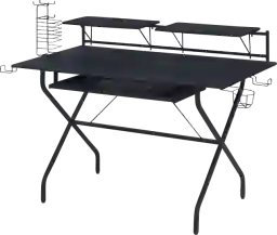 Bring a compelling and cohesive aesthetic in your arrangement with the Harimoney computer desk. It offers sufficient room for 2 monitors and keyboard tray, this piece is your perfect choice whether for working tax bills or playing online games. Featuring rich black finish, it will blend in any room decor flawlessly. Customer assembly required.