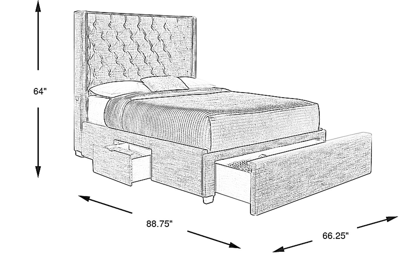 In the soft lines and refined curves of the Harlow Hill bed, a touch of creative flair keeps the mood light and airy. The tall headboard of this traditional piece cuts a stunning outline in dark gray upholstery. Between the wingbacks on either side, its plush, inviting padding is dotted with button tufting details. Convenient USB ports in the headboard make it easy to keep your devices charged and close by. Storage drawers in the footboard and side rails can accommodate extra bed linens, clothes and more. Mattress and foundation (if required) sold separately.