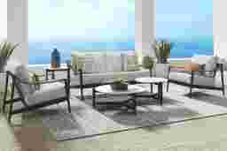 Harlowe Black 5 Pc Outdoor Loveseat Seating Set with Dove Cushions