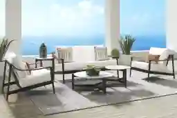 Harlowe Black 5 Pc Outdoor Loveseat Seating Set With White Cushions
