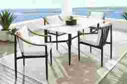 Harlowe Black 5 Pc Outdoor Rectangle Dining Set with White Cushions