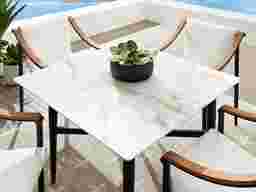 Harlowe Black 5 Pc Outdoor Square Dining Set with Dove Cushions