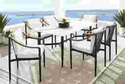 Harlowe Black 7 Pc Outdoor Rectangle Dining Set With White Cushions