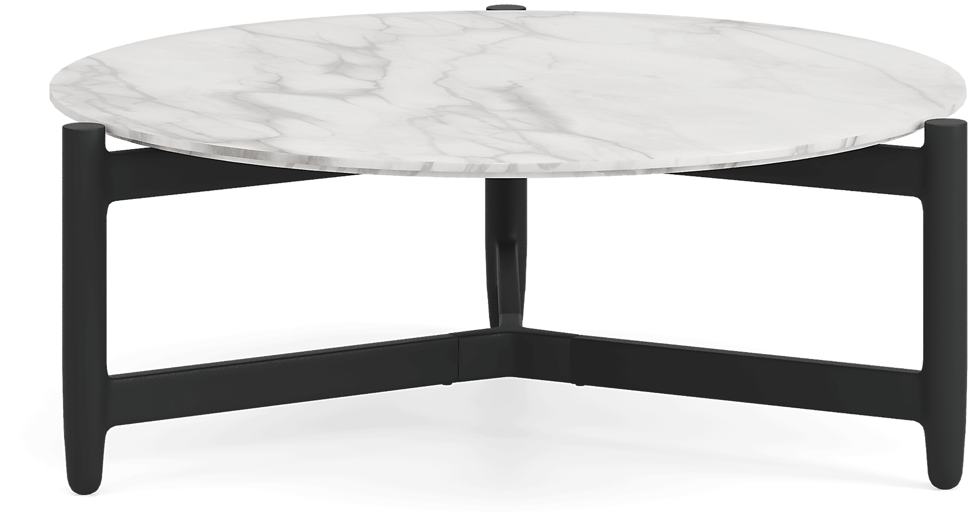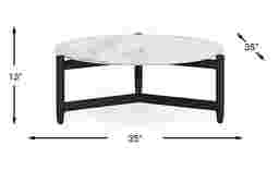 Cool, modern confidence radiates from the swooping curves of the Harlowe cocktail table from Cindy Crawford Home to create a space where connection and relaxation stretch long, long, long into the night. A weather-resistant aluminum frame in black is accented with smooth tapered legs and cross support. A round sintered stone tabletop in a marble pattern completes the look.